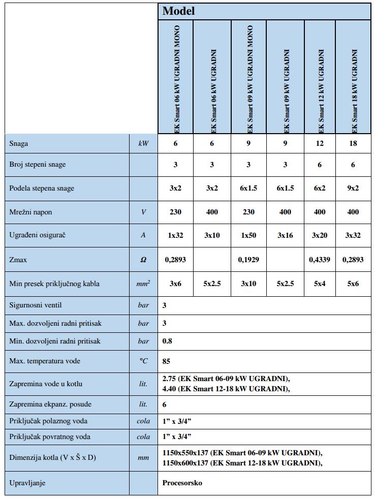 EK-Smart/вградлив електричен котел е современ блок-котел наменет за системи за централно греење. Уредот е опремен со заштитно коло кое гарантира целосна безбедност. Грејачот и пумпата се вклучуваат преку контролерот, кој е одговорен за максимална оптимизација на работата.